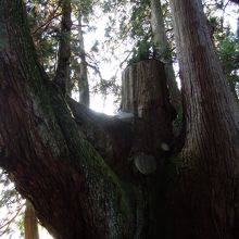 杉の周りは板張りになっていて、杉の周りをぐるっと一周できるようになっています。ただ、板の一部腐食が進んでいるところがあり、滑りました。訪れる際は足元に十分気を付けて下さい。
