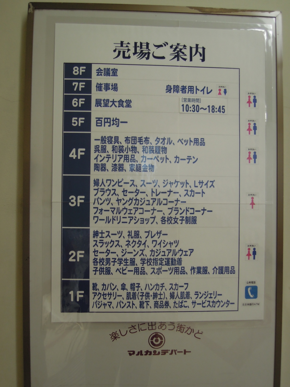 無料駐車場(誘導員が2名いて安心)に車をとめ、昭和な感じのする百貨店に入店。