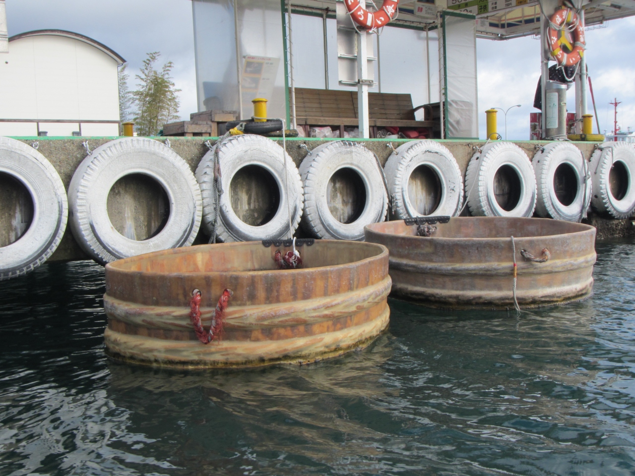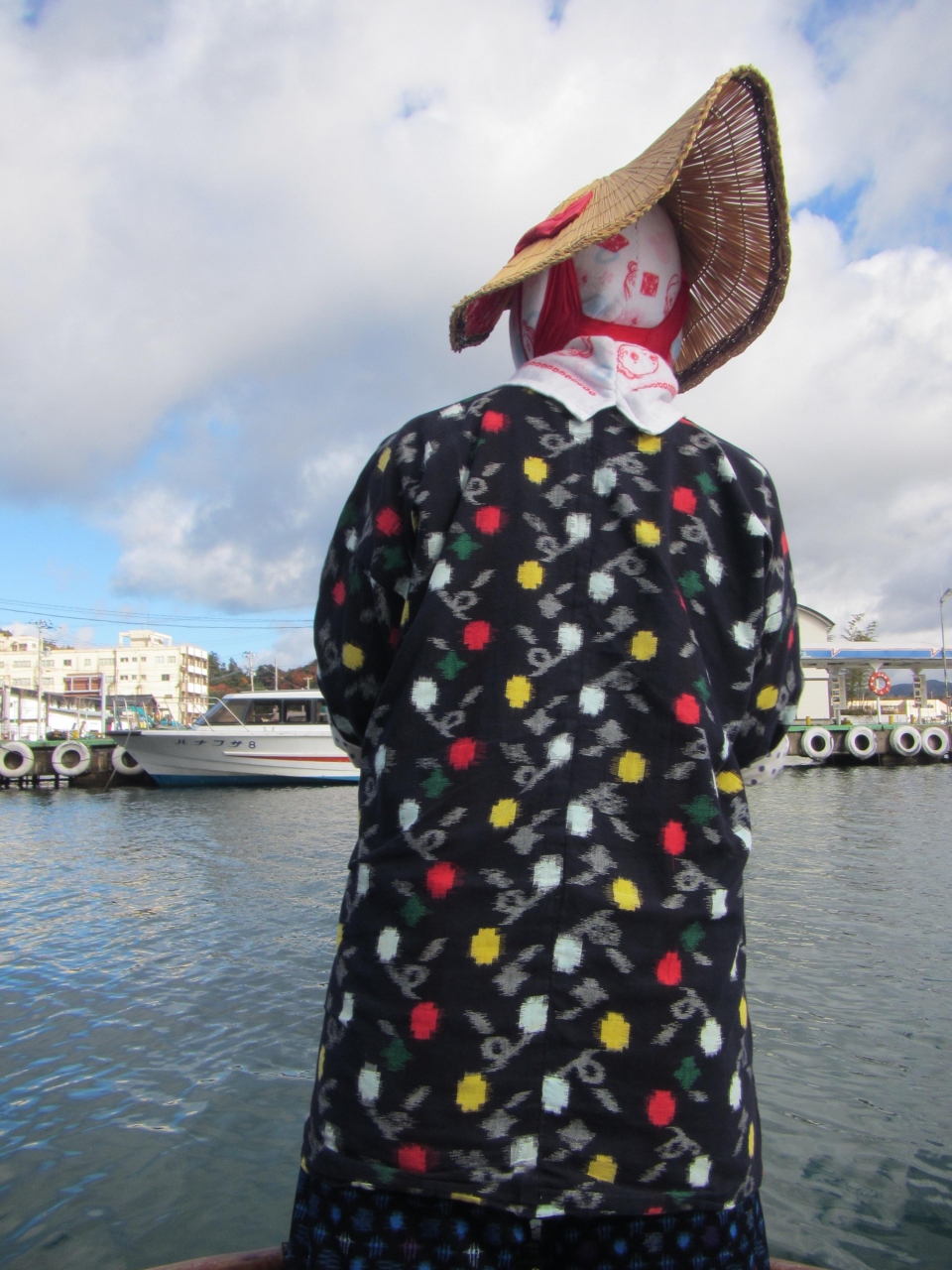 短い時間ながらタライ舟に乗ることができます。港の売店で乗船券を買い、船頭さんに漕いでもらいます。頼めば少し漕がせてもらえます。なかなか真っ直ぐには進まず、その場でくるくる廻るだけでしたが、いい経験させていただきました。ちなみに冬だったのでお客さんは誰もいませんでした。