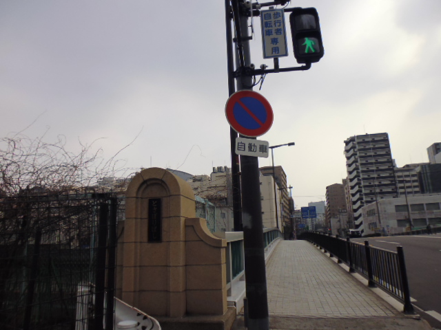 土佐堀川にかかる土佐堀橋はこの辺りでも古いもののようで地味な印象の橋です。
