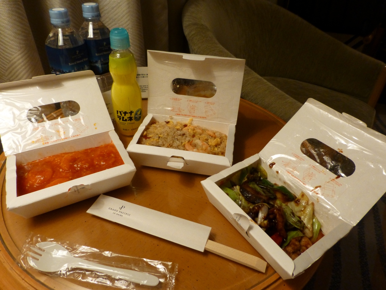 ホテルグランパシフィックLE DAIBAに宿泊した時に利用しました.お店はロビー・フロントの一番奥まったところにあります.いかにも中華料理店という門構えです.ホテルに宿泊しているとデリバリーサービスを受けることができます.メニューはエビチリなどのおかず類4種類と焼きそばやチャーハンのメン・ご飯もの4種類ほかに点心や白ごはんなどです.デザートは杏仁豆腐しかありませんが,20分ほどで部屋まで届けてくれました.ルームサービスと違って紙容器に料理が入っています.デパ地下で惣菜中華料理を買って帰って食べる感覚ですが,部屋まで届けれくれるので楽です.味もおいしかったです.