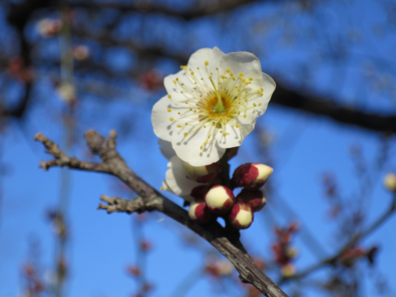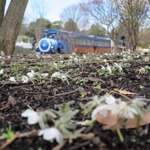 立春を過ぎたとは言え、園内の広場は枯芝に覆われ、日陰には一部、先日の雪も残っている場所があり、寒々としていましたが、ところどころ春の花も咲き始めている園内でした。