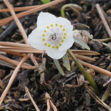 園内、北方のこもれびの里の農家の北斜面にセツブンソウの群落が作られています。黄花ではなく、もっと可憐な白花種です。