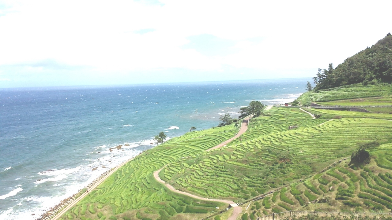 駐車場の端が展望台のようになっていて、そこから見下ろすとやっと千枚田の景色が見えます。