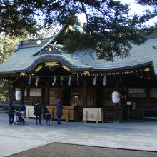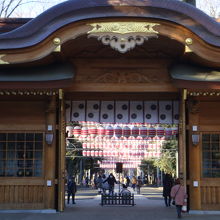 大國魂神社は大國魂大神を祀った神社です。創建は景行天皇41年(西暦111年)と伝えられている古社で、1900年もの歴史のある神社です。隋神門にはたくさんの提灯が並べられ、参道にまで続いています。また社務所の前には梅の花がほころび始めておりました。当日は平日の夕方でしたが、参拝客は多く拝殿には人が途切れることはありませんでした。