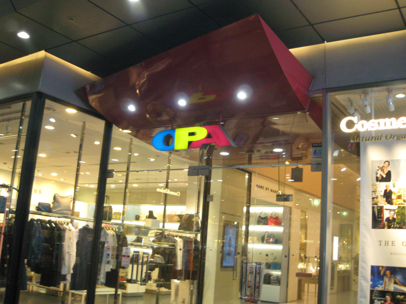 華やかな心斎橋の中でもひときわ派手な、青、黄、ピンクの「OPA」の文字が目立つ商業施設です。中に小さなショップがぎゅうぎゅう詰まっている感じで、空間の余裕や優雅さはありません。若い男女向けだと思います。価格もリーズナブル。