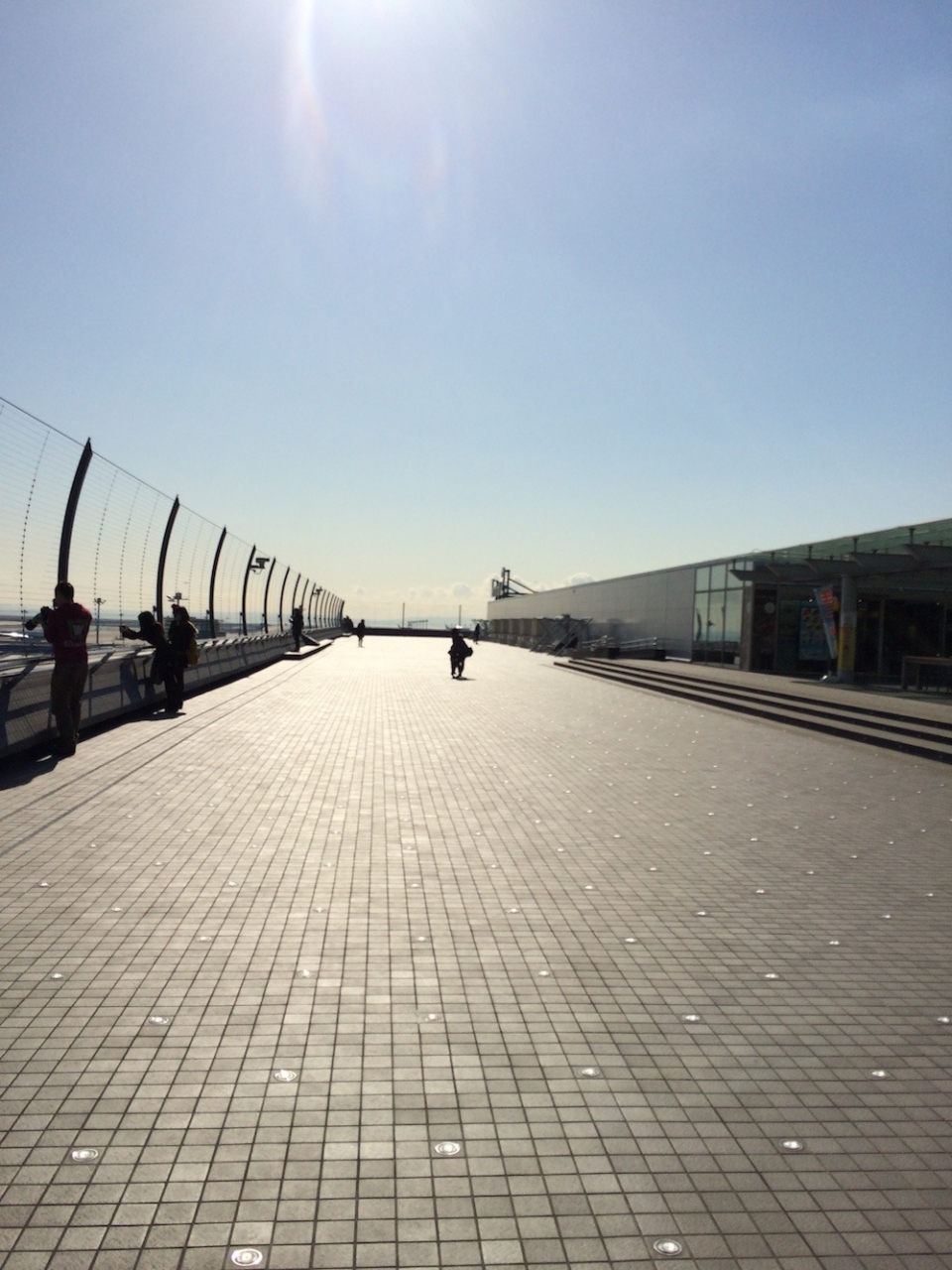 全日空サイドの展望台です。網目にはところどころ撮影用の穴も開いていますし、iPhoneでも写真はとりやすい構造になっています。また、ガリバーズデッキよりもこちらのほうが開放感もありますし、なぜか空いています。