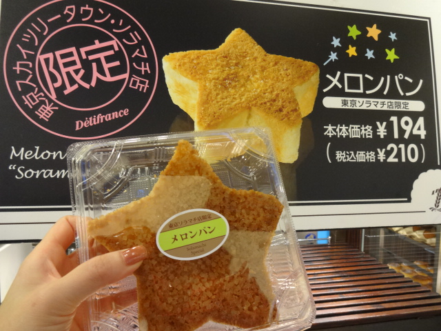 スカイツリータウン開店に合わせて到着したので、まずは小腹を満たそうと、こちらのベーカリーへ。限定品である、星形のメロンパンを購入、早速いただいてみました。