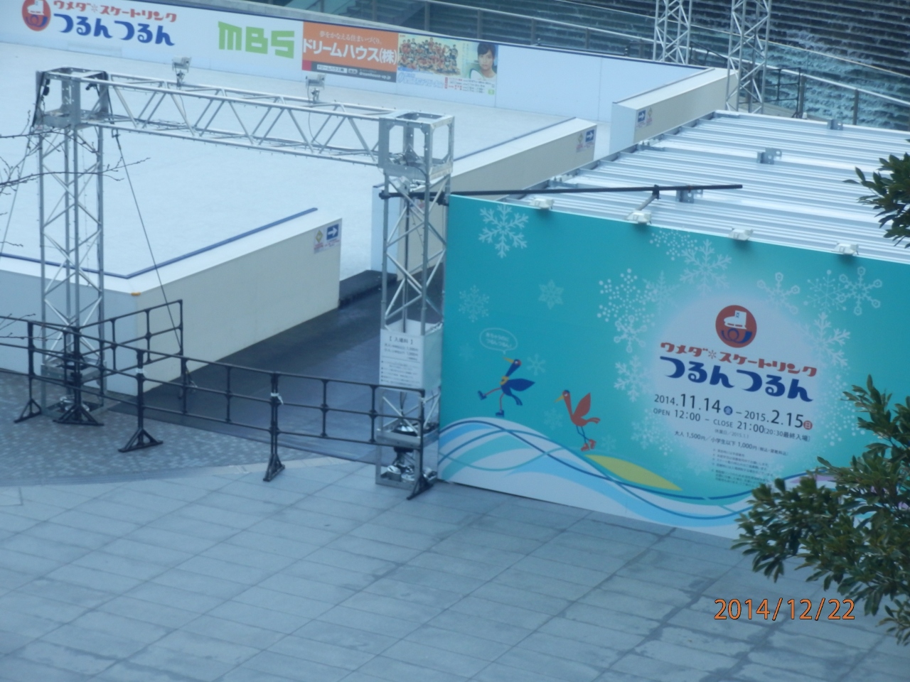 JR大阪駅とグランフロント大阪の間にある地平の一階広場、普段簡単なイベントにしか使われ手いない場所だが、びっくりしたのはここにアイススケート場ができたとの新聞報道があったので見にいってきた。かなりものづきですね、少し日が過ぎていたので撤去されていたのが残念、写真をご覧になるとテントで囲まれているところにアイススケート場だった但し氷ではなく硬質のビニール製らしい、人気がなかったみたいだね、当たり前だよ
