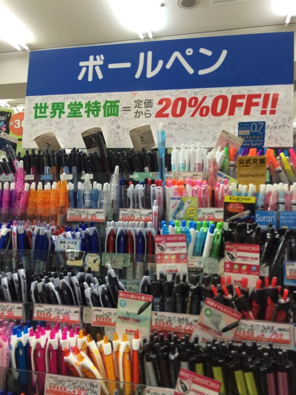 新宿の伊勢丹から先四谷よりは、あまり店が無いイメージですが、実は面白いお店がいろいろあります。ここ、世界堂もそのひとつ。文房具が安く、しかも種類が豊富に揃っているので、いろいろ買い足すにはここ世界堂が割安。東急ハンズや伊東屋がやめてしまったチケット制度の割引も、ここ世界堂では健在です!