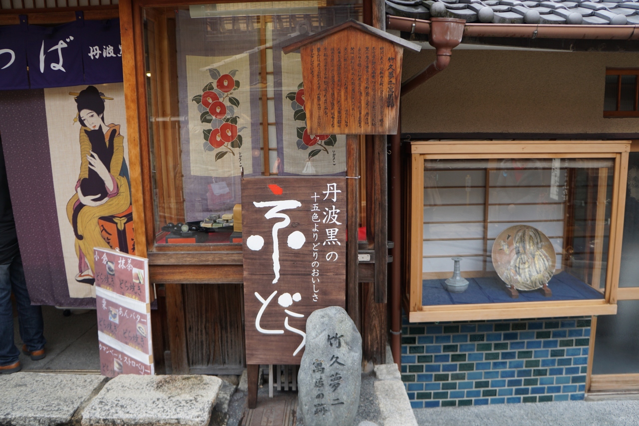 竹久夢二寓居跡は、二寧坂の中ほどに石杭があります。ここは、大正6年、竹久夢二が恋人彦乃と暮らした場所。2カ月ほど暮らしたようです。