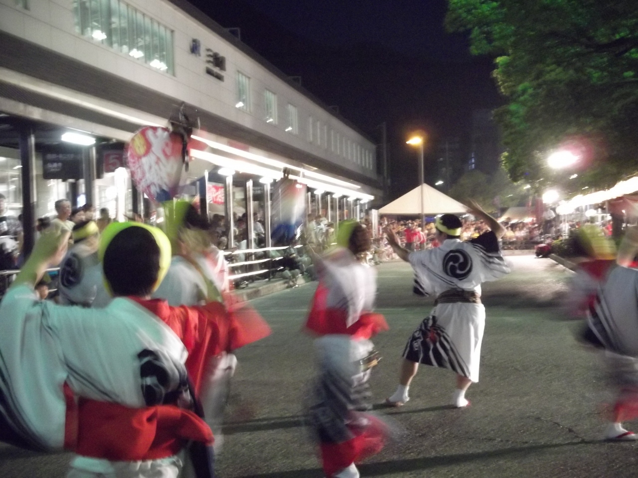 町を踊りの団体が練り歩く日や、花火の日とイベントがいろいろあります。