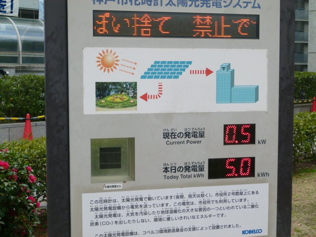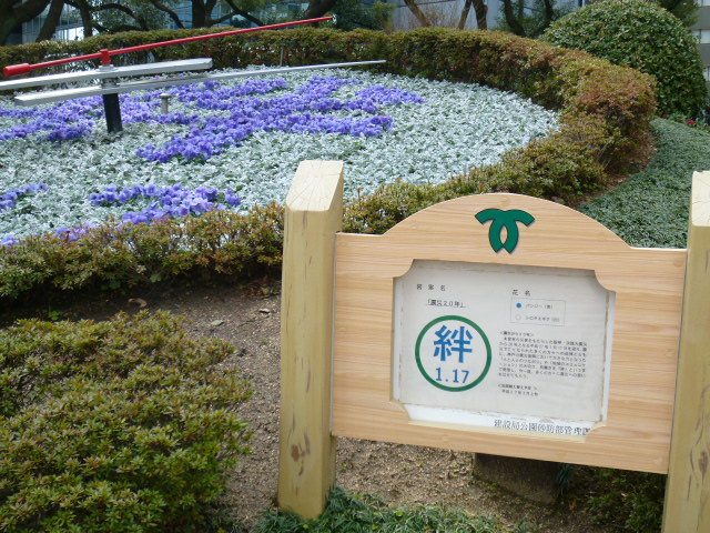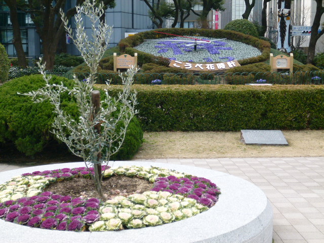 今回は神戸の街を散策しています。神戸市役所の北側隣にあります。日本で初めて造られた「花時計」とのことです。神戸と言えば20年前の出来事「阪神淡路大震災」が記憶に残っています。その方たちへの追悼と人とひとの繋がりの大切さを「絆」の字として表現しています。とても綺麗な草花で造られています。素晴らしいです。