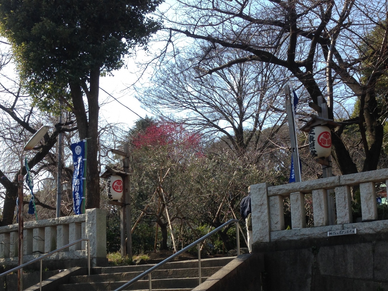 狭い境内ですが、まだ蕾の堅い梅や枝垂れ桜の木が所狭しと植えられており、更にはすぐ隣りに梅林があります。