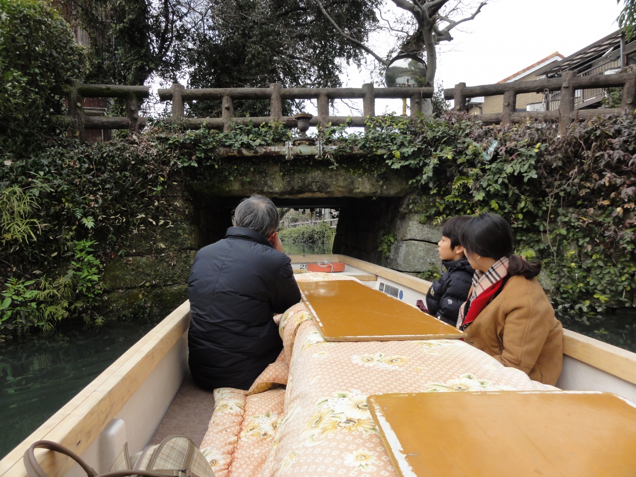 1月に柳川に行って来ました。寒い時期だったので1時間も川下りをすると凍えるのではと心配していましたが、天気にも恵まれ、また舟には中央に細長いコタツがあって、コタツの両側に座って暖を取れたので快適に過ごせました。