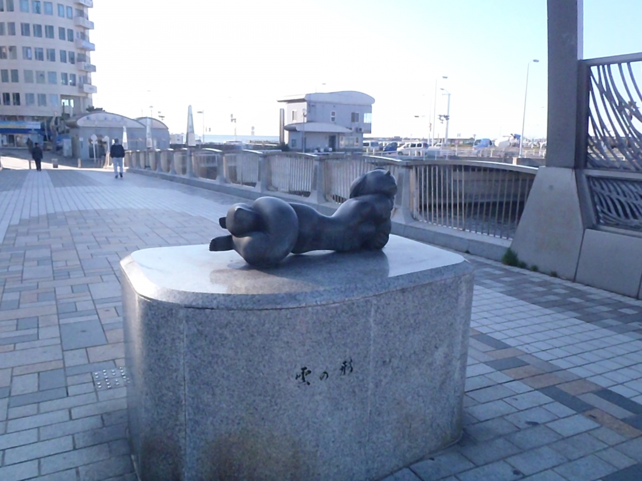 境川河口に架かる人専用橋の弁天橋の中程には「雲の形」と言うブロンズの像が有ります。
