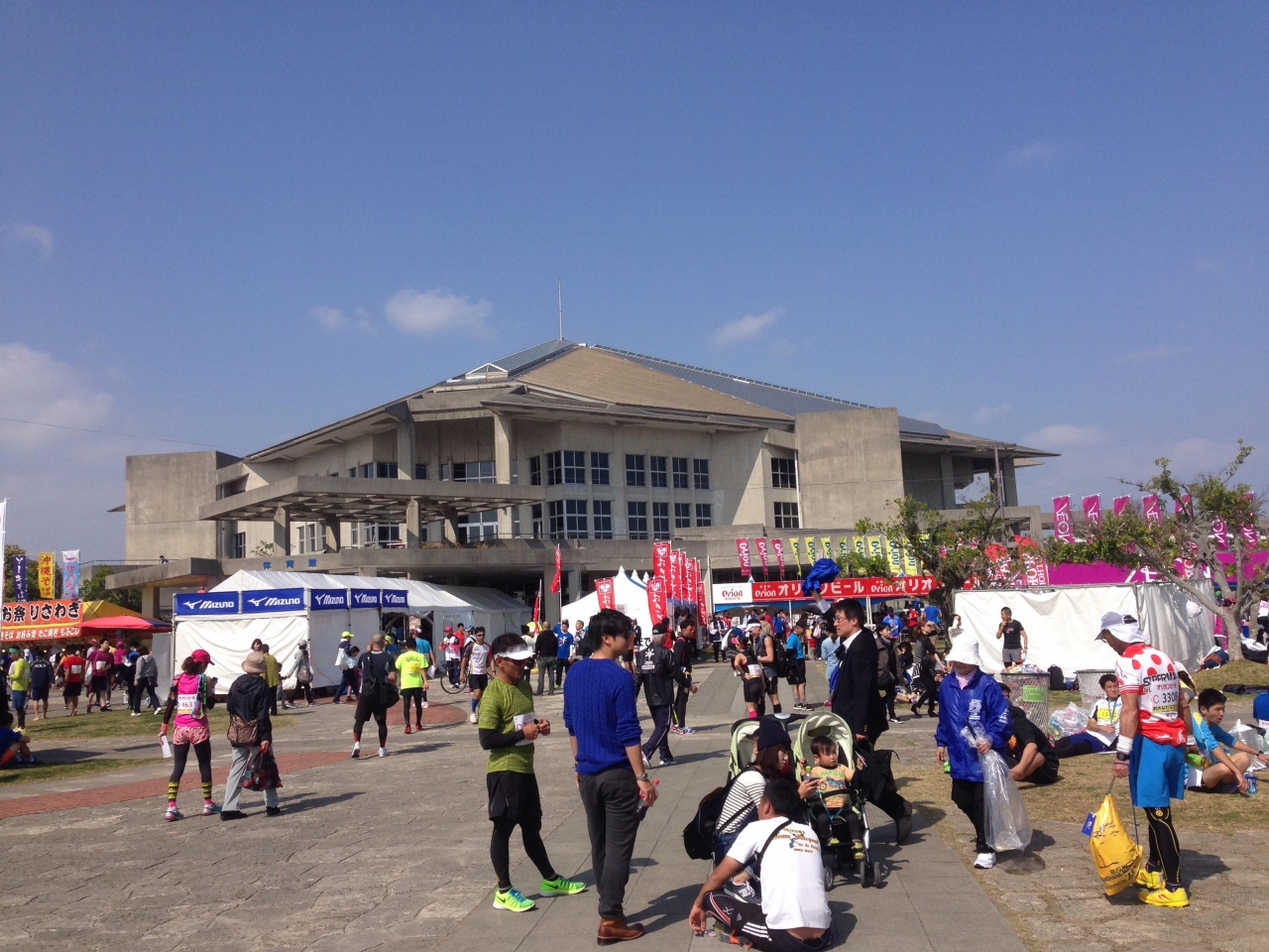 おきなわマラソンのゼッケンをもらうために訪れました。また、当該マラソンのスタートとゴール地点でした。感想は体育館、陸上競技場、大型バスも入れる駐車場ありの立派な施設でした。那覇からは52番のバスで1時間30分、運賃は860円でした。