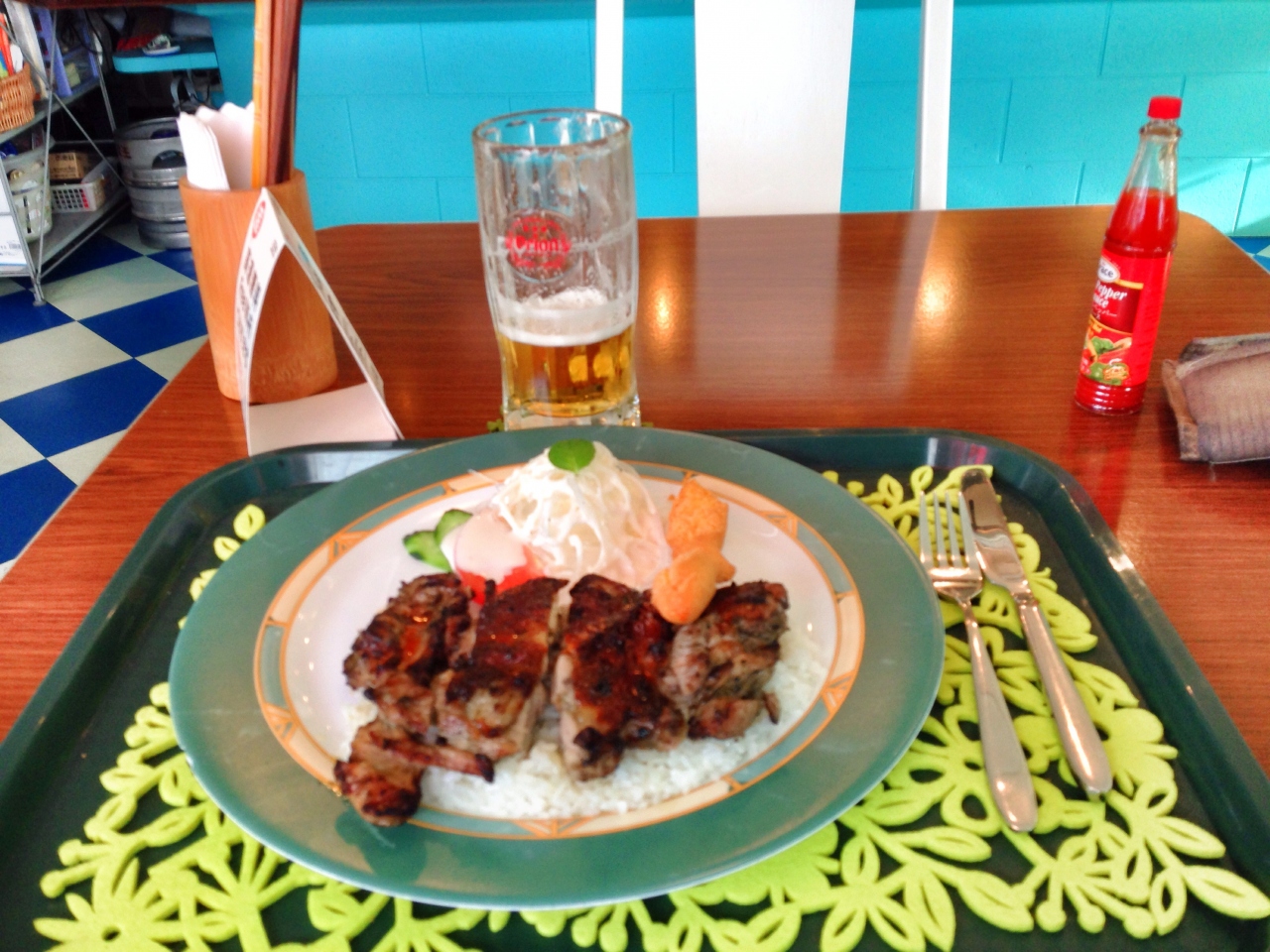 胡屋の中央パークアベニューにあるジャークチキンが美味しいアメリカの雰囲気がするカフェでした。地元市民とアメリカ軍関係者がよく利用していました。料理は一番人気のジャークチキンを食べました。