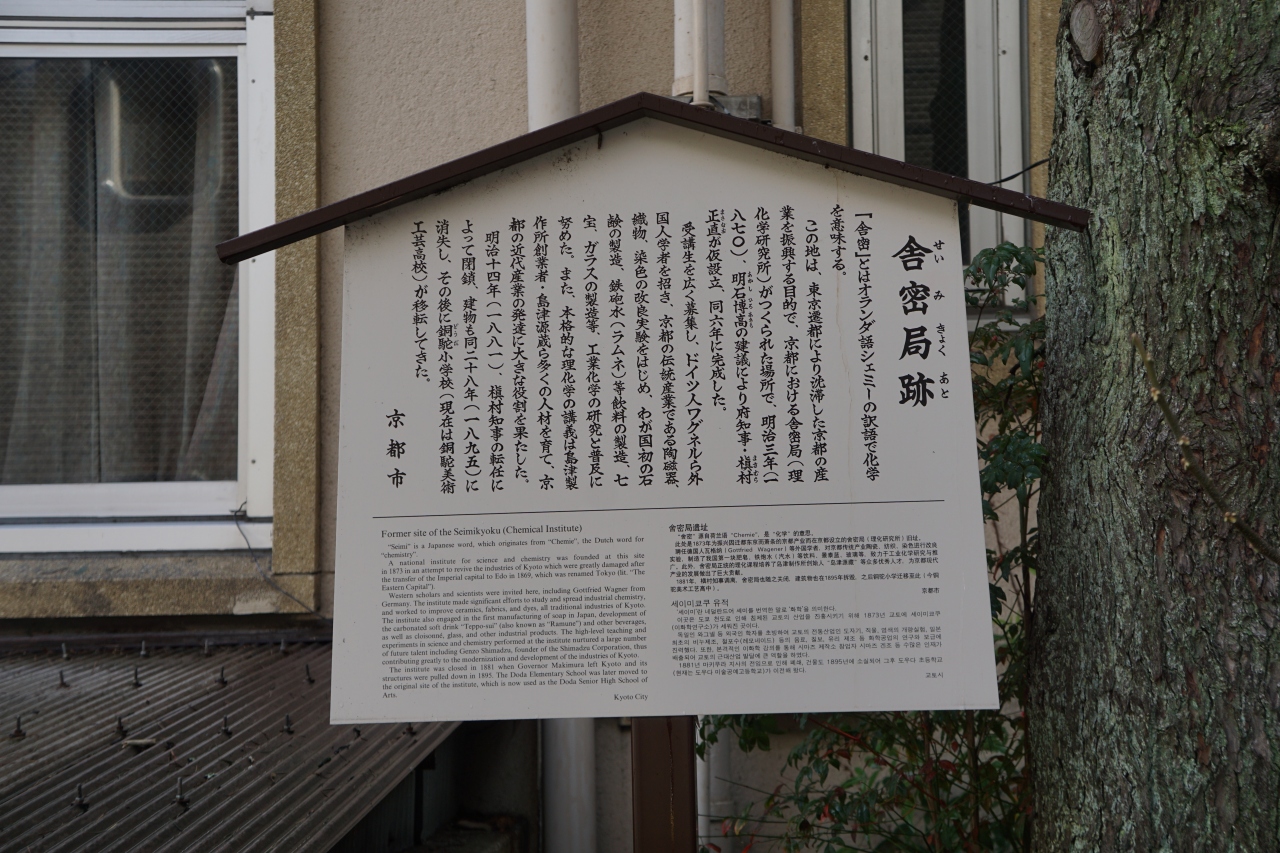 京都の舎密局の設立は、明治3年。工業製品の製造指導や薬物検定に七宝焼などの製造改良など。島津製作所の創業者、島津源蔵もここで学んだ一人。田中耕一さんのノーベル賞もこんなところに遡った歴史があると思うと、明治政府の目の付け所は素晴らしいことだったような気がします。