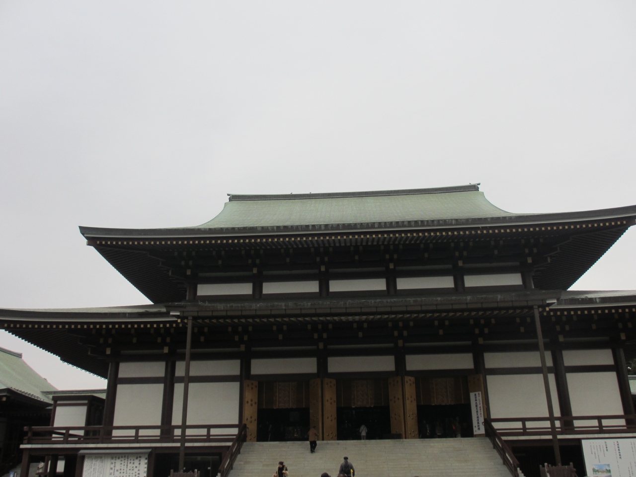 過去に初詣に行った時など成田山新勝寺といえば、ここでお賽銭を投げてお参りするという強い印象がありました。今回は2月の平日の小雨が降る昼間に行ったので、全然印象が違いました。大本堂は中に入ることができます。靴脱場があって、靴を入れる袋が置いてあります。大本堂の中に入るとより一層厳粛な空気を感じました。