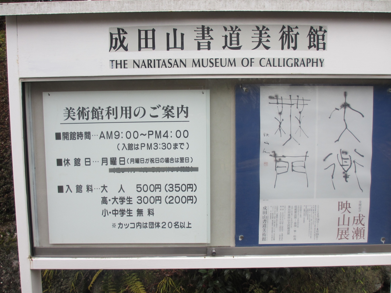 成田山の中では珍しく有料の施設です。500円の入場料が必要です(ただし売店だけの利用は無料です)。場所は成田山公園の中にあり、総門から入った場合最も遠いエリアにあります。入るといきなり正面に、2階の高さまである大きな書が目に入り、インパクトがありました。