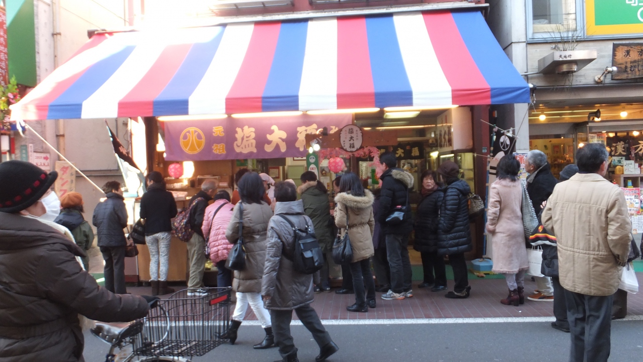 「巣鴨地蔵通り商店街」にも何軒かの塩大福を売るお店がありますが、行列はここが一番大きかったですかね。