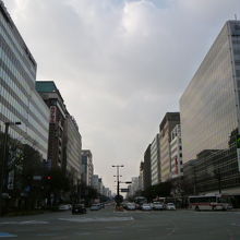博多駅の西側出口から右手に斜めに延びる大通り。