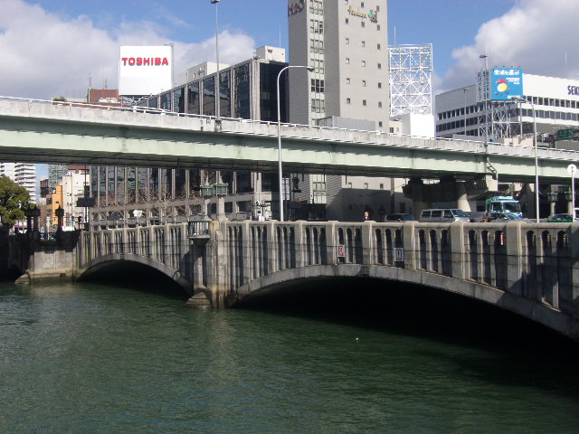 こんな所に珍しさを感じてしまうのも、あまり見慣れていないからなのかもしれないですが、大江橋の北側の高架道路の下部は水中に建っている感じで、なんだかヴェネツィアのような風情が感じられて素敵でした。水運の町としての大阪という側面を現代的に感じられる橋だと個人的には思います。