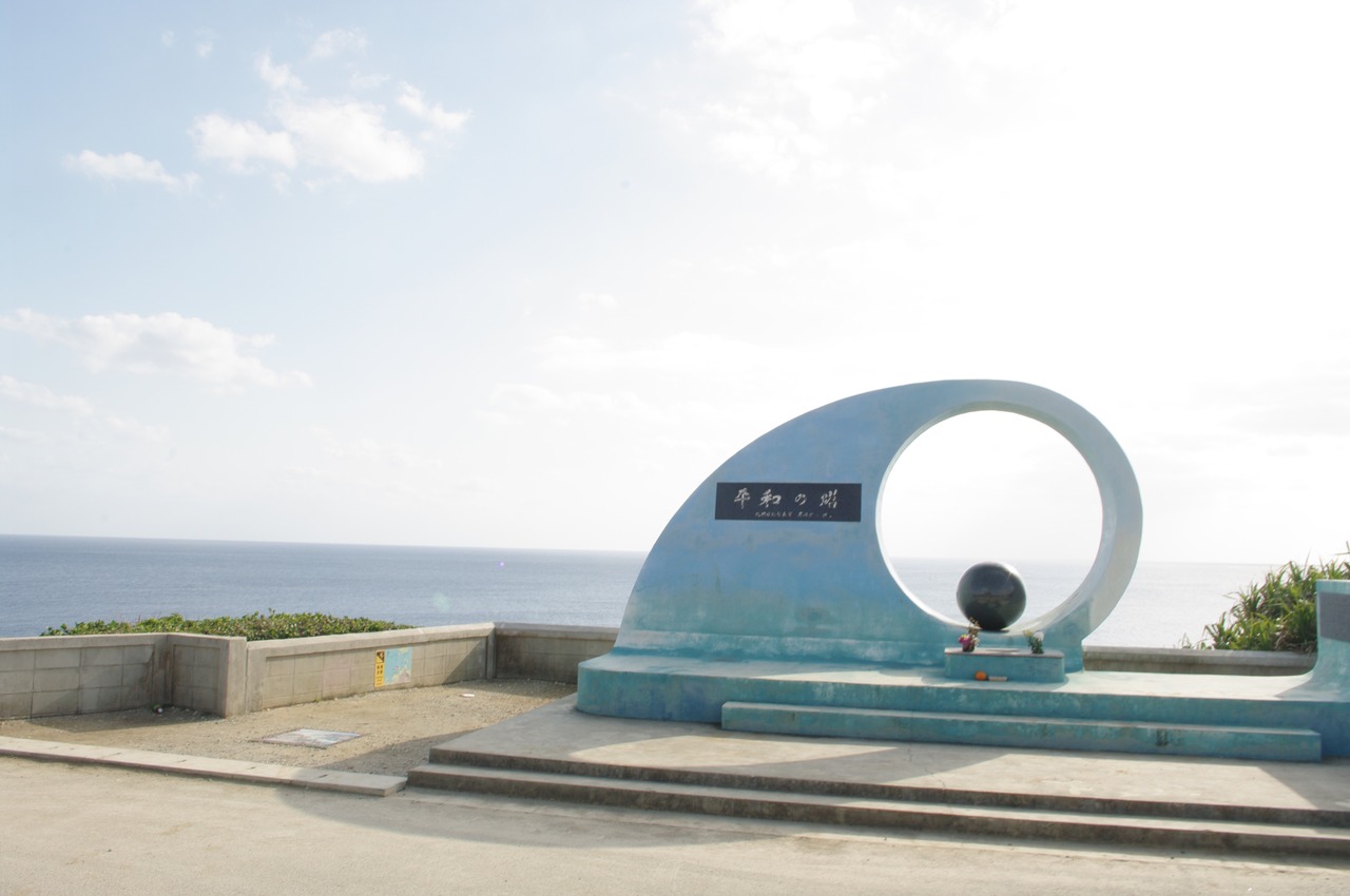 沖縄本島の南部の西側に位置する、喜屋武岬。東側の整備され公園になっている知念岬とは異なり、道無き道を車で進むと、突如視界が開ける。展望台なども立派なものはなく、平和の礎が広がる海をバックに設けられている。あたりは断崖であり、味気ない感じもまた知念岬とは相反する。平和の礎に手を合わせてください。