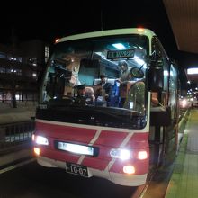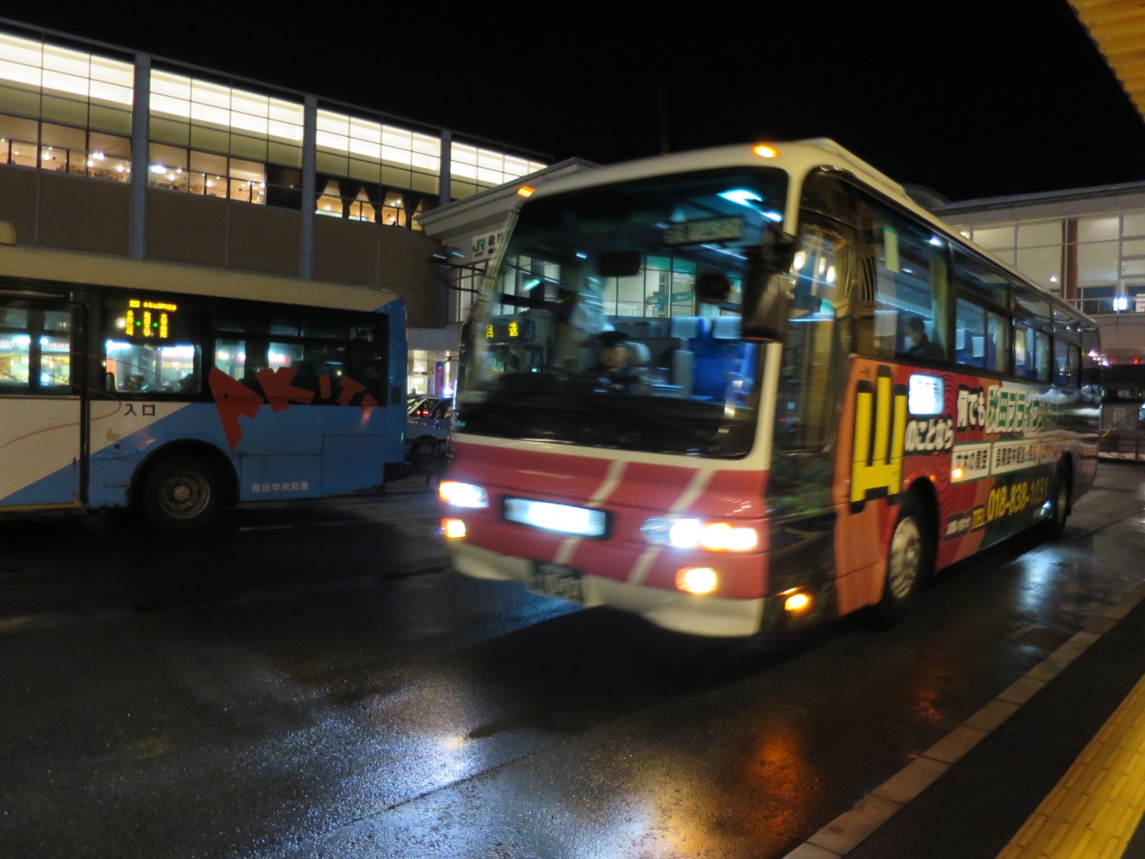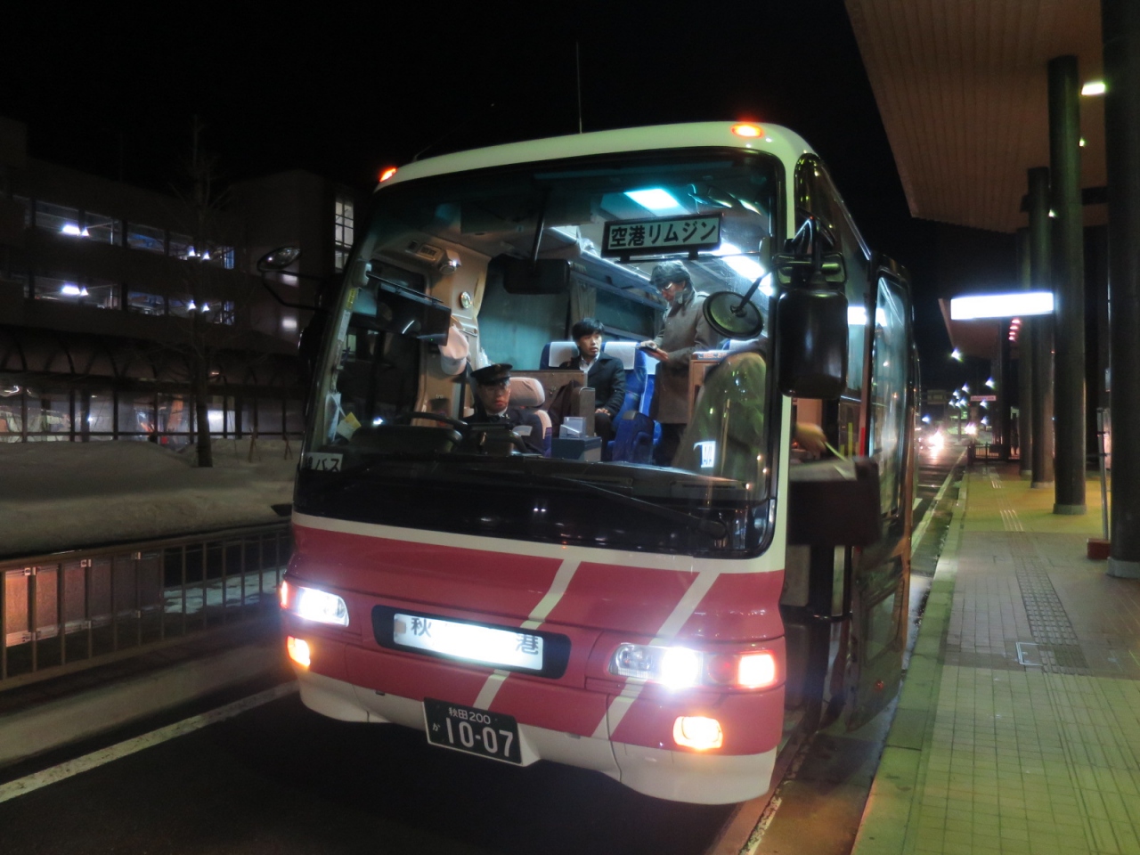 秋田市役所から秋田駅の西口のバスターミナルを経由して秋田空港まで行くリムジンバスです。路線や便数の少ない発着便に合わせるように、30分~1時間に1本ほどの便があります。秋田駅西口から空港までは所要時間35分。道路の混雑事情にもよるのでしょうが、5分~10分ほど余計にかかる気がします。