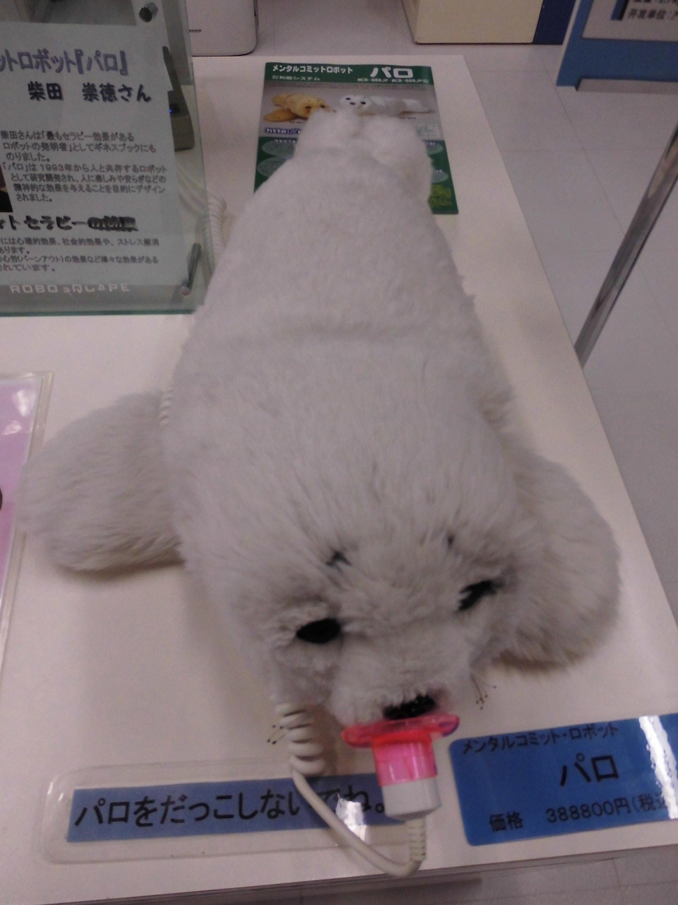 おしゃべりするキティちゃんや、撫でると目を細めて喜ぶゴマフアザラシの癒し系ロボットなど、かわいめのロボットが多いです。