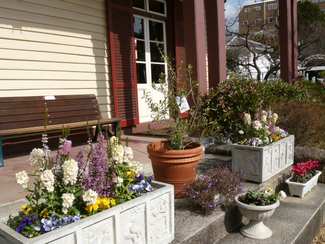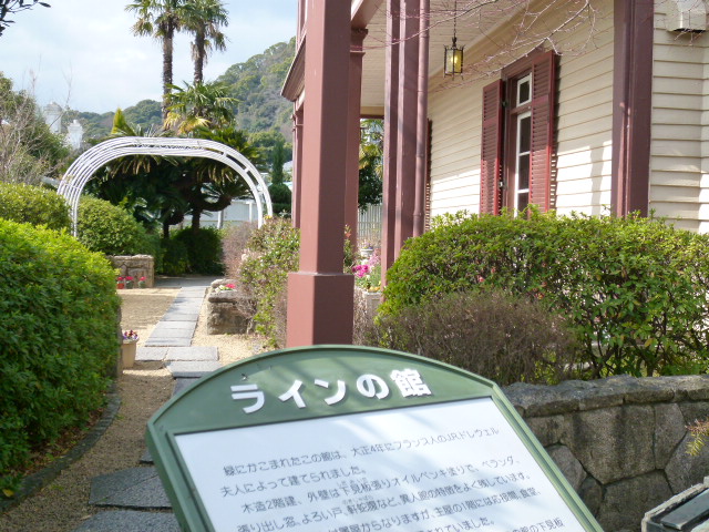 今日は神戸の観光地「異人館街」を散策していますが、館内を観光するには、観光範囲にあった各種チケットがあります。しかしココ「ラインの館」は無料です。なぜでしょうか。花壇に咲いた花々がモダンな建物は似合いますね。高台でもあるので庭からは景色もいいですね。館内は展示品なども見ごたえがあります。是非立ち寄りを。