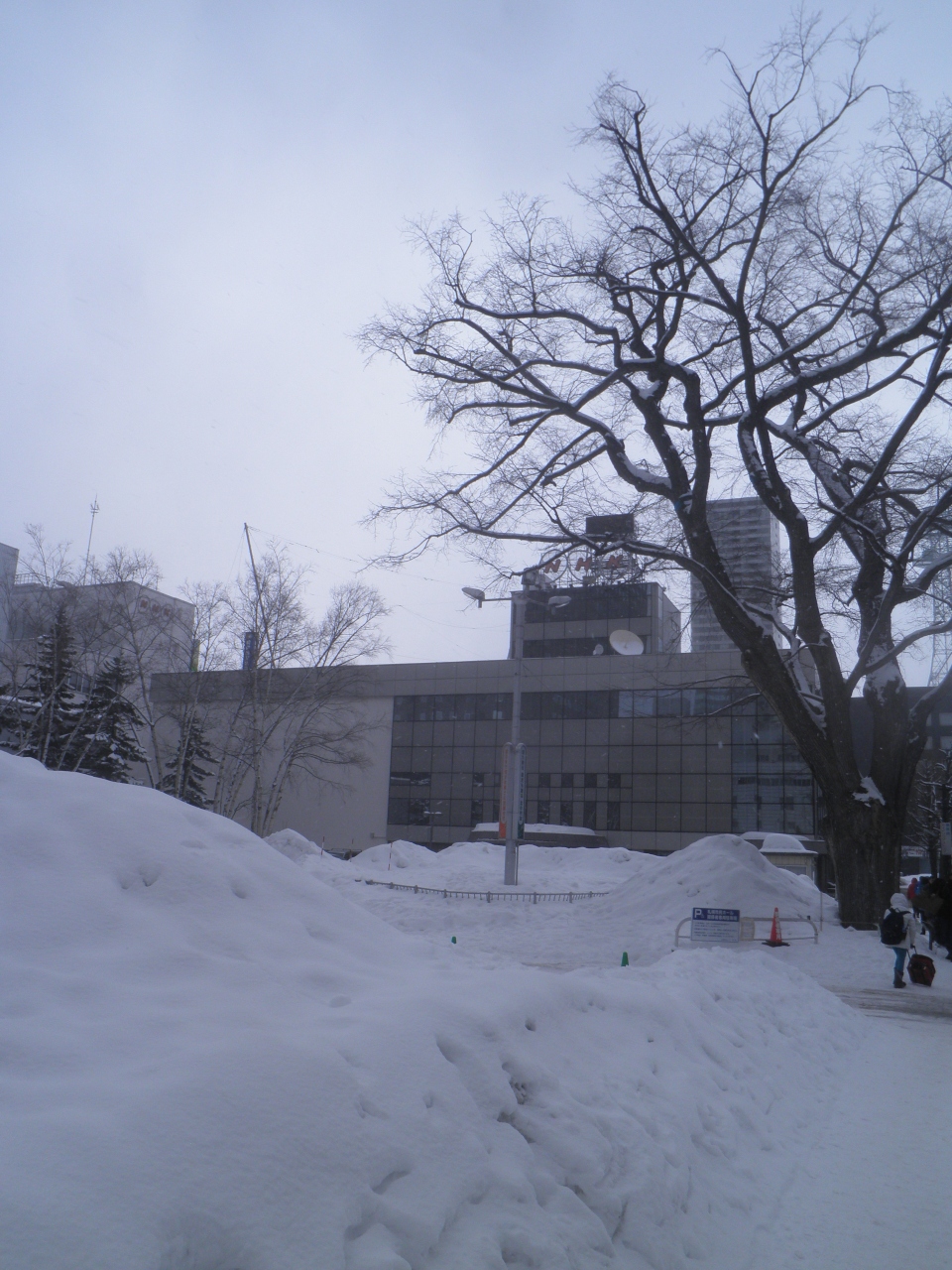 札幌の大通公園の北向かいにあるNHKの札幌放送局に行って、北海道の風景写真展を観にいきました。建物の周りは、街中でもたくさん雪が積もっていました。会場は狭いけど、北海道の春夏秋冬の風景写真は心和むかんじでした。また、余市が舞台のひとつである連続ドラマの展示も少しありました。 でも、なんか警備が厳重な感じでゆっくりできない雰囲気でした。