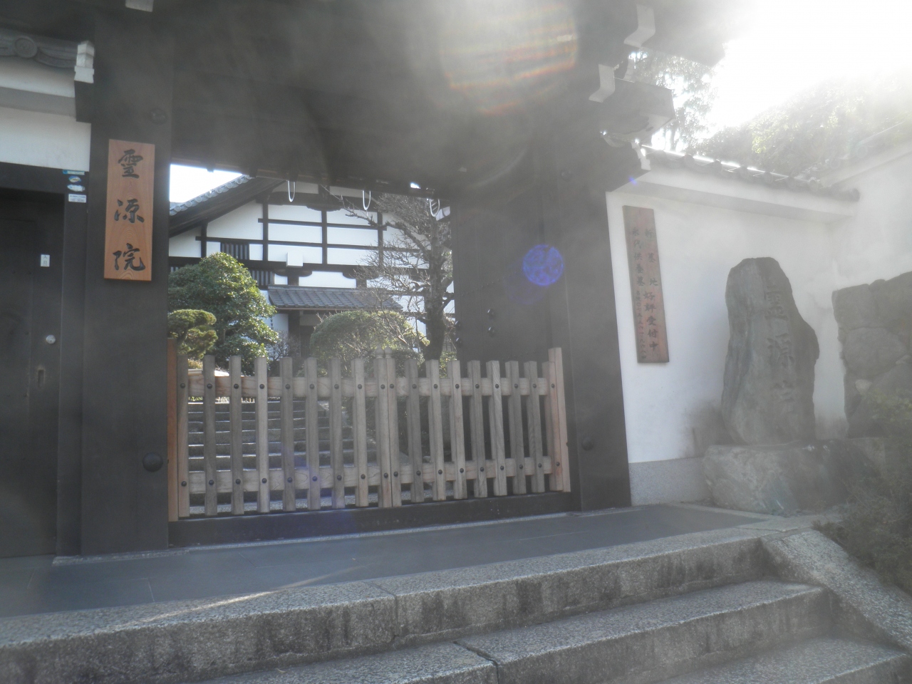 京阪本線の東福寺駅でおりて、東福寺に参拝に行きました。 東福寺駅は特急が止まらないので、途中で乗りかえました。 参道にはいくつか寺院が並んでいて、霊源院もそのひとつです。 門には柵が渡してあっても、門の前から中は眺められるようになっていました。落ちつた雰囲気で、お墓参りの方が多いようです。