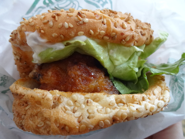 平日の14時前でしたが、店内は満席でした。1番人気のチャイニーズチキンバーガーをテイクアウトしました。甘辛ソースとチキンが良くあっていました。
