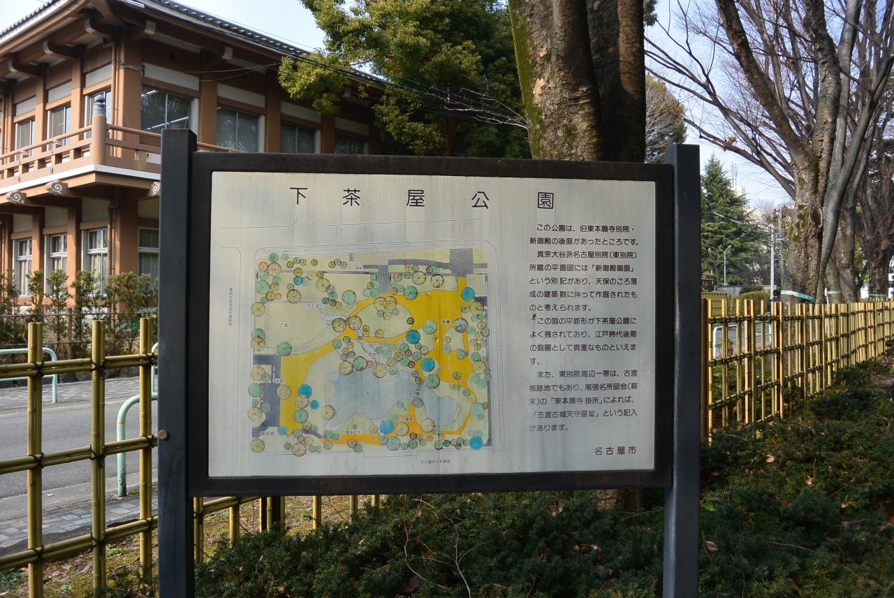 下茶屋公園のあたりは、旧東本願寺別院・新御殿の後庭があり、池あり、築山ありで起伏に富んだ回遊式の名園として知られていたそうです。戦災後、当時の面影を残す公園として整備されました。江戸後期の庭園様式として貴重なものだそうです。かつてはホームレスの人たちの青テントがありましたが現在はありません。ひっそりとした都会のオアシスです。