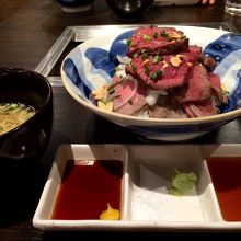 ローストビーフ丼をいただきましたが、お肉たっぷりでボリューム満点、味もなかなかで満足でした。ジュージュー焼きたい人は通常(夜)メニューから注文すればいいようです。