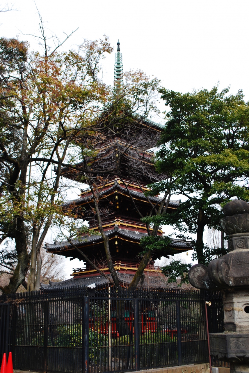江戸時代を舞台にした小説を読むと必ず出てくるのが寛永寺の鐘と五重塔、上野を訪れた機会に見ておこうと思い訪れてみてわかったのが、東照宮からだと柵に阻まれて近くに寄れないことである。動物園からの方がアングルが良さそうであったが、五重塔を見るためにはいるのもと、結局、柵越しで見るにとどまった。藤堂高虎の茶室といい、旧寛永寺の五重塔といい、動物園に入らないとじっくり見ることができないというのはどういうことなのだろうか。是非、直接建物までアクセス可能にしてほしいものである。由緒のある五重塔だけに、一考を期待する。