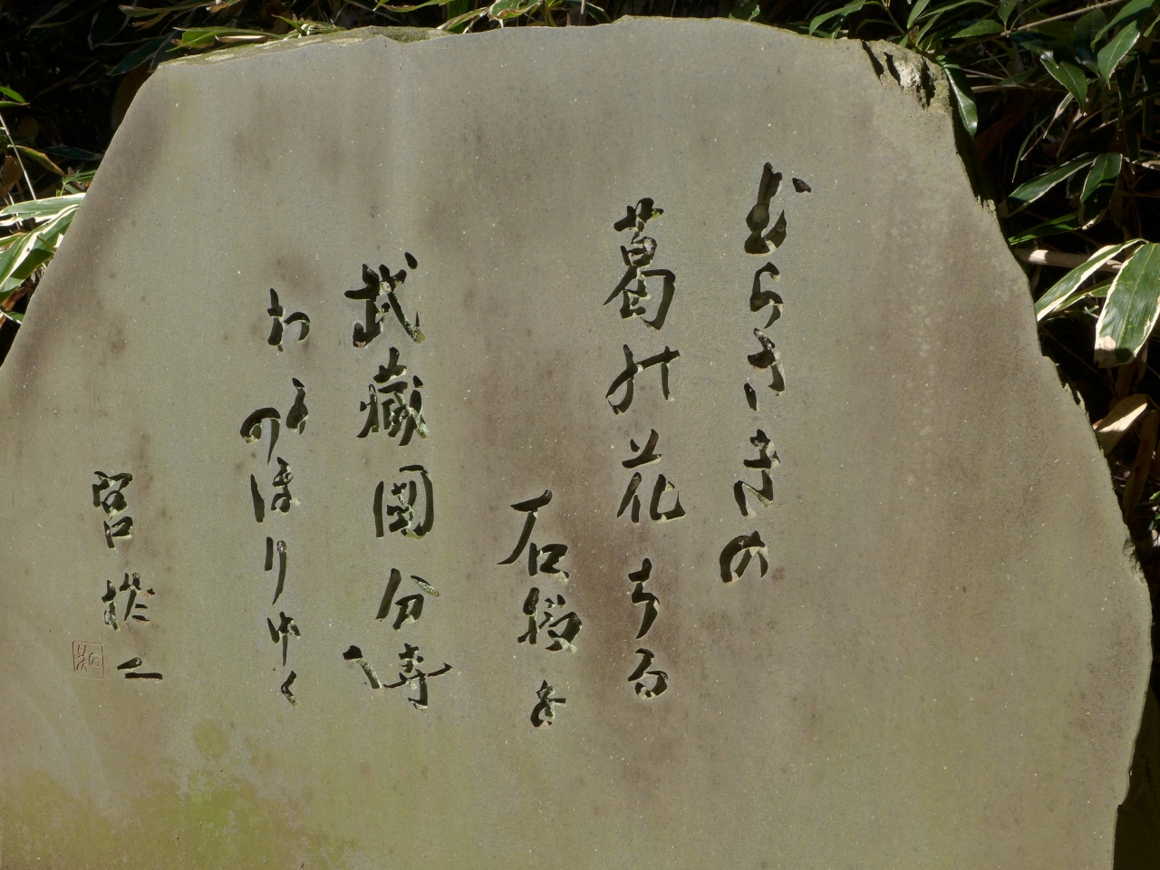 「万葉植物園」がある境内よりも仁王門や薬師堂の方が歴史を感じます、仁王門の近くには宮柊二の歌碑がありました。