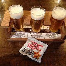 最後はフードスペースで、今昔のビールお試しセットやお土産屋さんがあります。