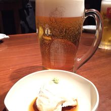 突き出しで出てきた、もちもちした豆腐が美味しく、メニューにないのかみましたが、見当たりませんでした。