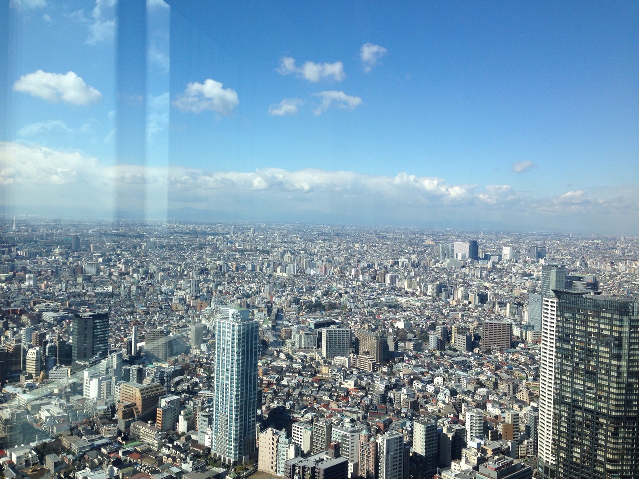 どちらもそれぞれの45Fにあり、展望室直通エレベーターであがります。いずれも無料。晴れた日は富士山が見えます。