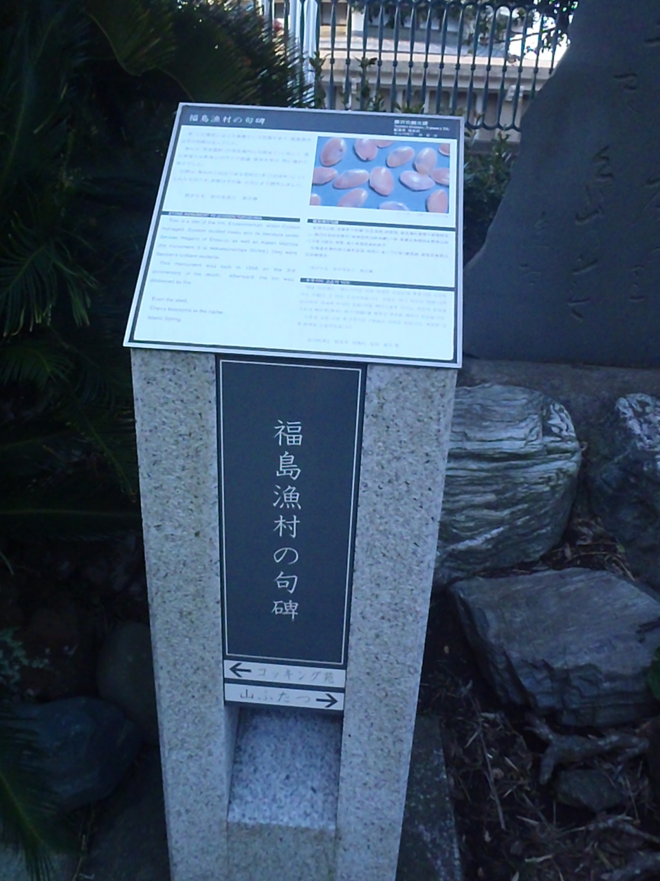 案内板によると、江の島の旅館の主人がた江の島のおみやげ品桜貝のことを唄った句の石碑だそうです。