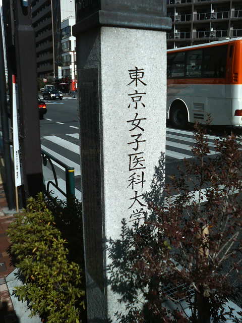 明治時代、漢方医の娘だった吉岡彌生がこの近くの飯田町に東京至誠医院を開院し、その後、同院内に創立した「東京女医学校」が大学のルーツになったとのこと。