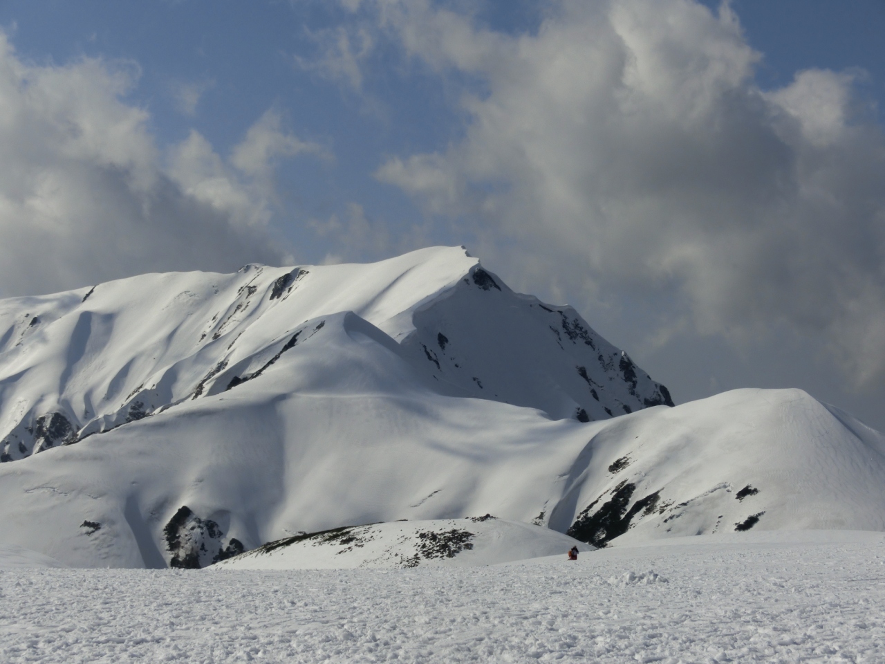 靴についてですが、雪の大谷は除雪されているのでスニーカー型の雪上歩行用の靴で良いのですが、室堂ターミナル脇から雪山を見る場合、雪が多少深い所を歩くことも考えられますので、ブーツ型の方が良いかと思います。晴れた日の雪山は、本当にきれいです!