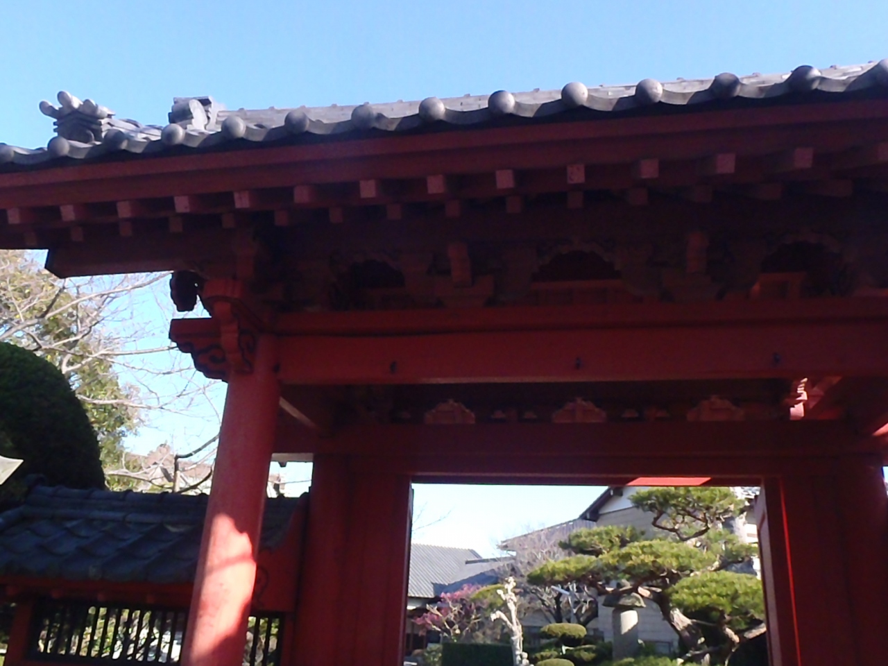 国道134号線沿いの小動神社の向かいにある朱色の山門がとても目立つ寺院です。