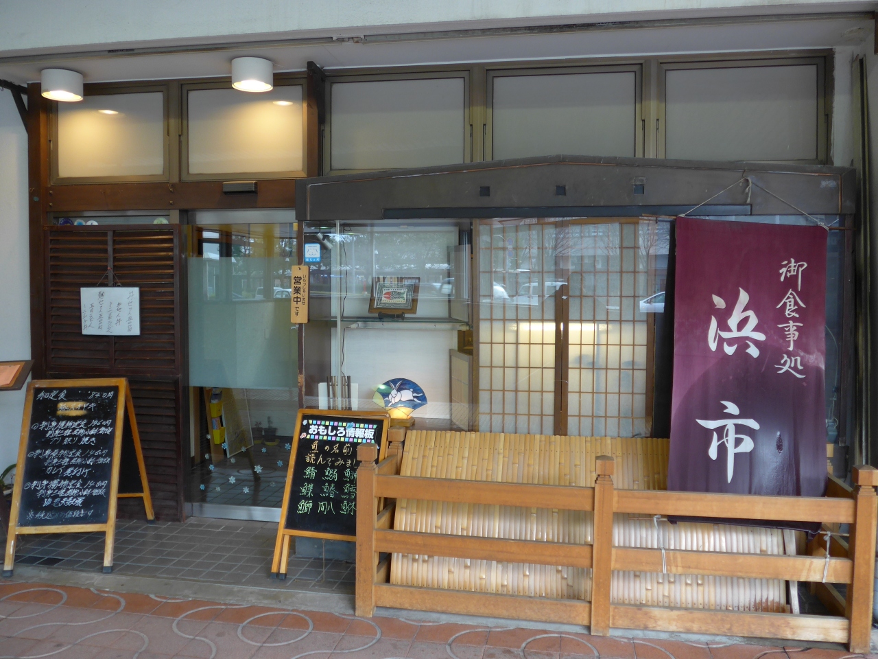 徒歩で地下道を渡りエスカレーターで出るとアーケードの商店街がありそのアーケード街の入り口付近にあるのが「浜市」です。