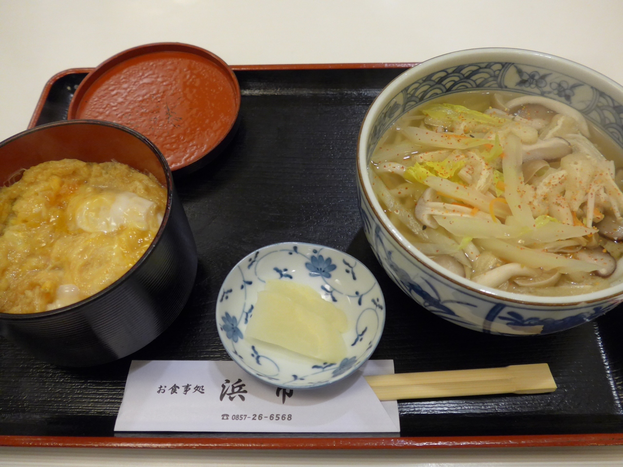 お昼時には日替わりの定食がありミニ丼とおうどんのセットで何と500円と