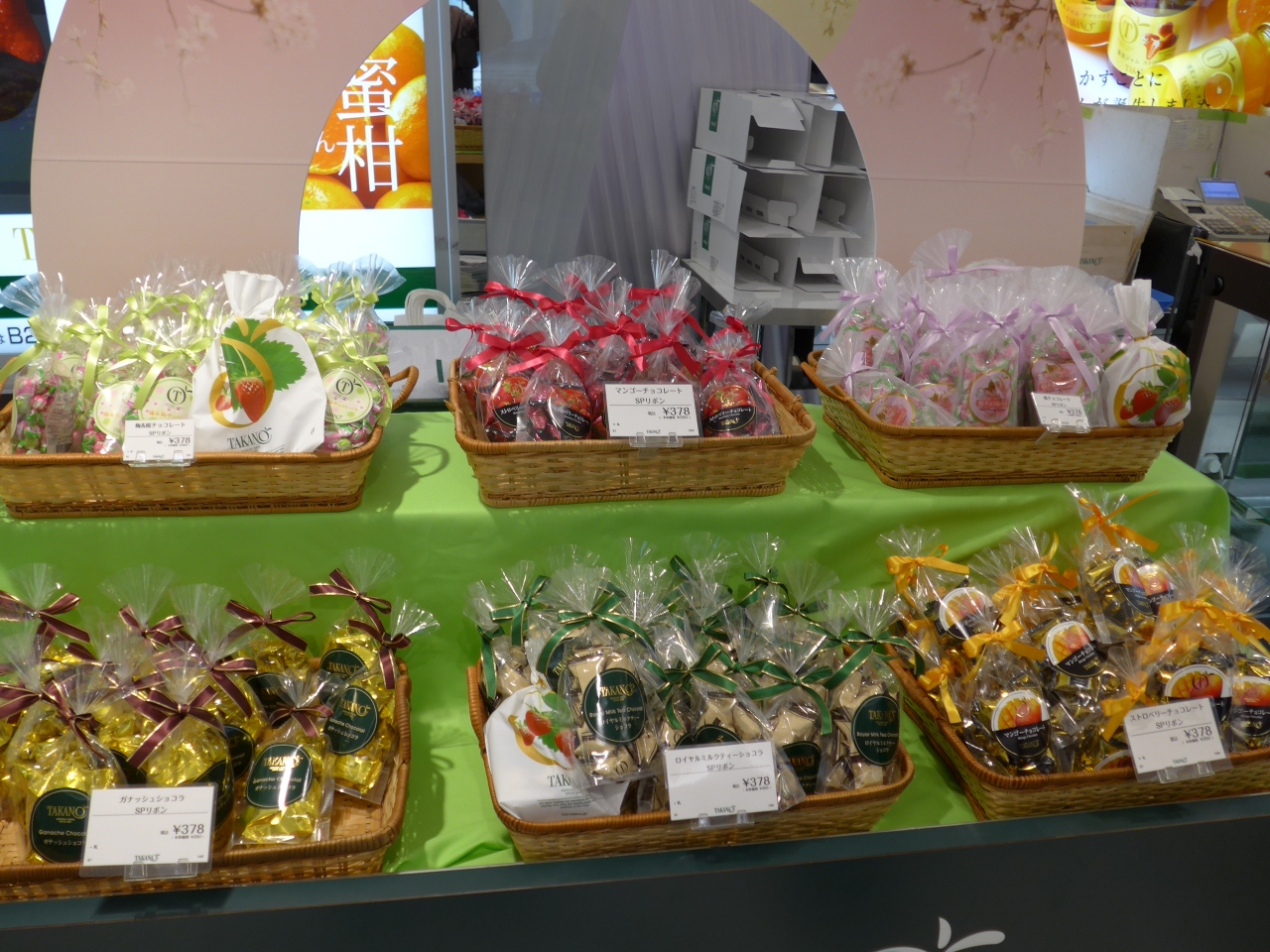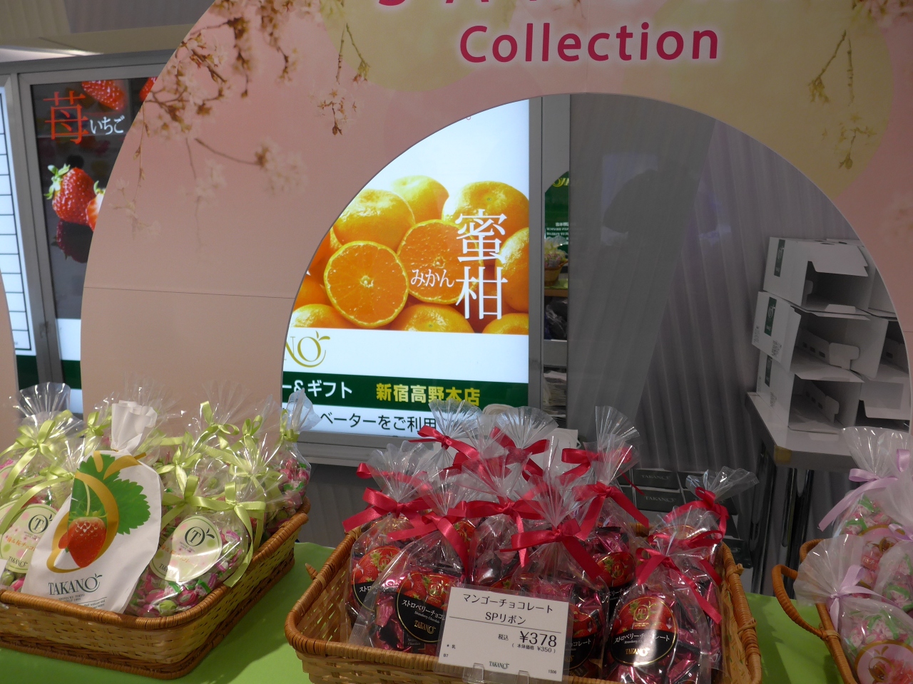 快晴の東京観光2日目の新宿御苑・新宿門から新宿駅西口に向かう新宿通りから高野の地下へ降りて直ぐに高野・ギフトショップを見かけたのでラッピングがとても奇麗にディスプレィしていたので購入しました。
