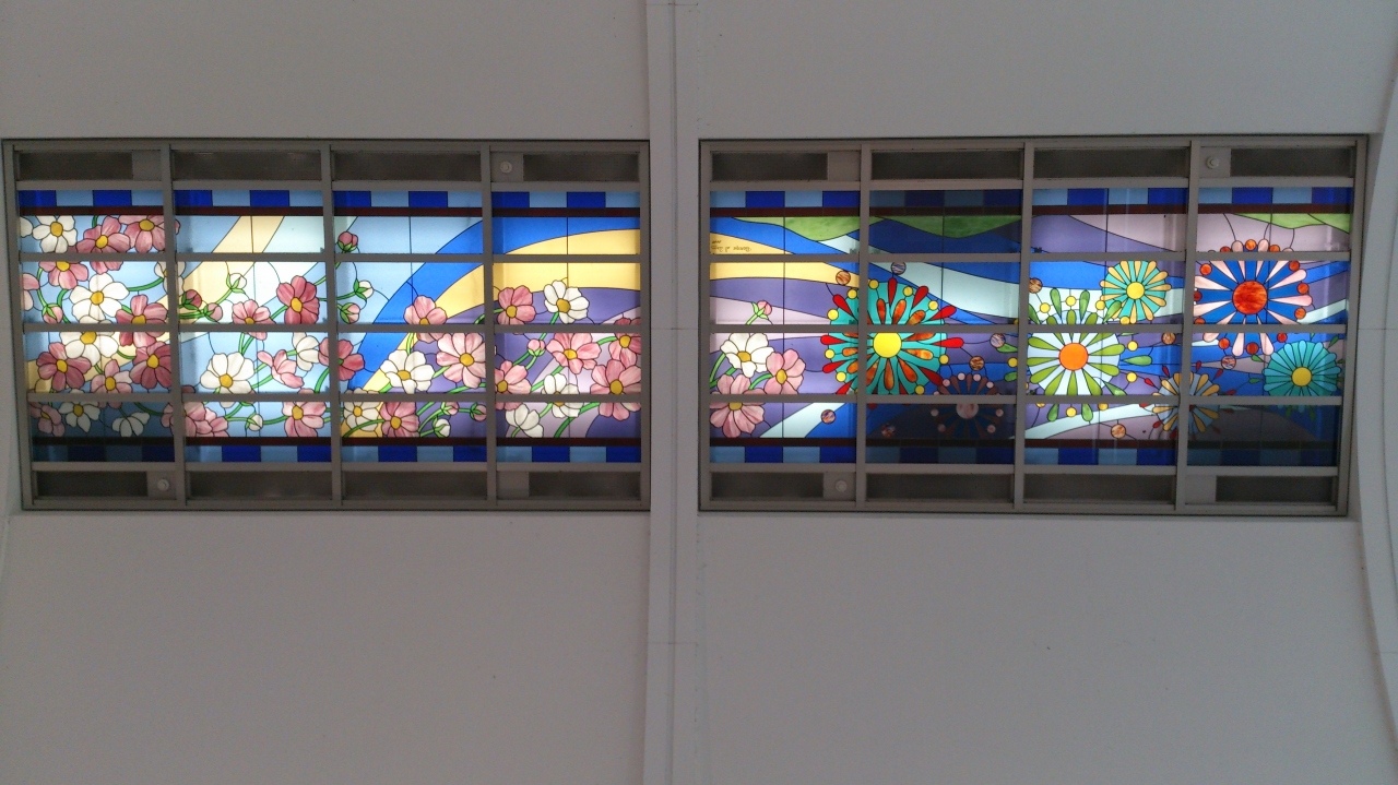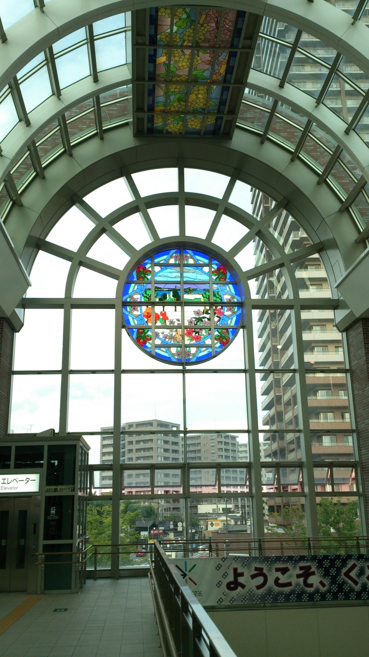 夏休みに九州旅行に行ってる途中にJR久留米駅に行きました。九州新幹線が全線開業したこともあり、利便性はとても便利です。駅舎はレンガ風の駅舎になっていました。また、内装は自由通路の天井や壁にステンドグラスが取り付けていました。